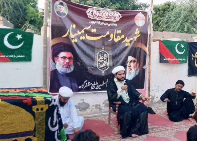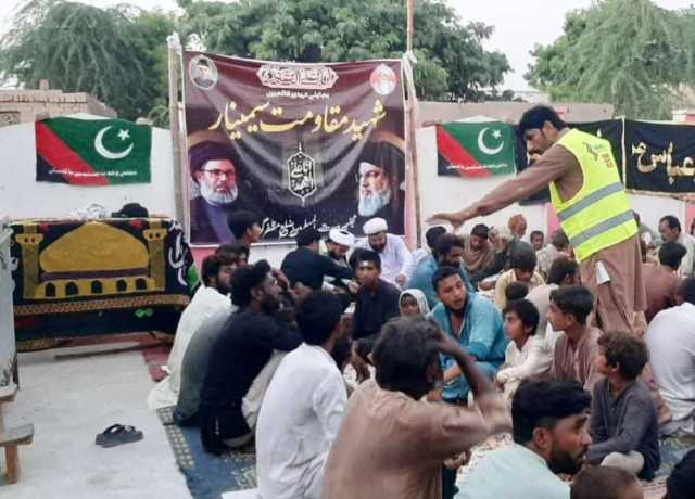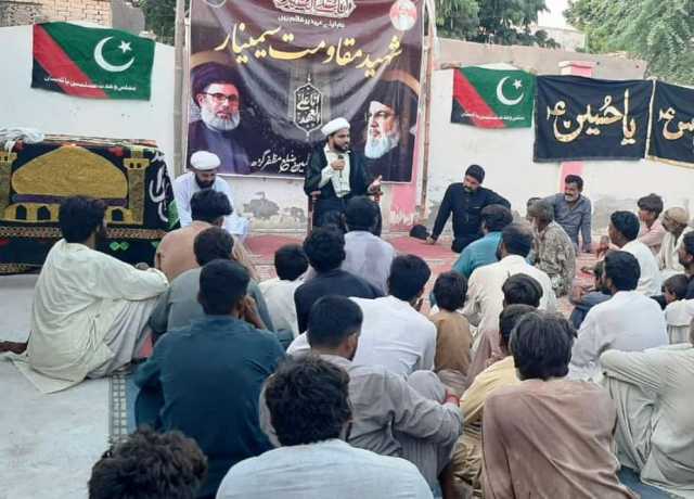 اسلام ٹائمز۔ مجلس وحدت مسلمین ضلع مظفرگڑھ کے زیراہتمام سید مقاومت سید حسن نصراللہ، شہدائے لبنان، شہدائے فلسطین و غزہ کی پہلی برسی کی مناسبت سے سیلاب سے متاثرہ علاقے ضلع مظفرگڑھ کے علاقے جوانہ بنگلہ میں ''شہید مقاومت سیمینار'' کا اہتمام کیا گیا۔ جس میں کثیر تعداد میں سیلاب کے باوجود سنی شیعہ مومنین نے شرکت کی۔ سیمینار سے مولانا ظہیر حیدر، مولانا وقاص حیدر، شہزاد مہدی انقلابی نے خطاب کیا۔ اس موقع پر ڈاکٹر مہر غلام شبیر، مہر صفدر حسین جوتہ، مہر اسد مہدی جوتہ، اختر عباس اعوان، ناصر عباس بٹ و دیگر نے شرکت کی۔ رہنمائوں نے اپنے خطاب میں سید مقاومت اور ان کے ساتھی شہداء کی قربانیوں کو خراج عقیدت پیش کیا۔ انہوں نے کہا کہ شہداء کی قربانیوں سے مقاومت کا راستہ رکا نہیں بلکہ اسی آب و تاب کے ساتھ جاری ہے، آج دنیا بھر میں شہداء کی یاد منائی جا رہی ہے، ہم شہداء کے ساتھ تجدید عہد کرتے ہیں اور وعدہ کرتے ہیں کہ شہداء کا راستہ کبھی ترک نہیں کریں گے۔