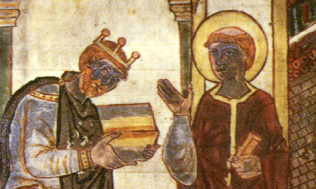 ان کی بادشاہی کی ایک یادگار تصویر جس میں وہ تاج پہنے اور ہاتھ میں کتاب لیے، سینٹ کٹبرٹ کے سامنے جھکے کھڑے ہیں آج بھی انگلینڈ کے شاہی ورثے کی علامت سمجھی جاتی ہے۔