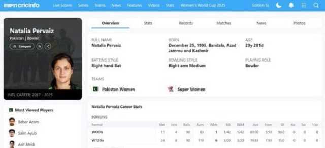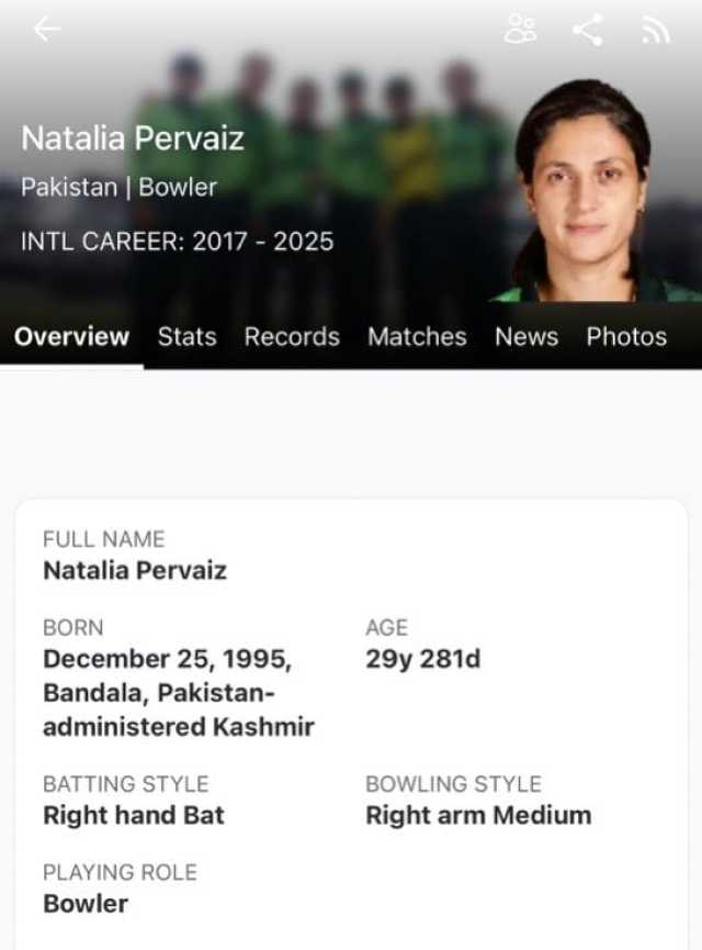 Before Sana Mir referred to Natalia Parvaiz's birthplace as "Azad Kashmir" during commentary, her ESPNcricinfo profile listed it as "Azad Kashmir." However, it was changed just now to "Pakistan-administered Kashmir," coz of pressure from the BCCI.