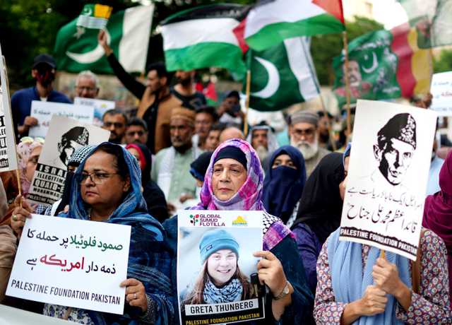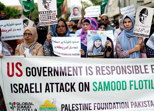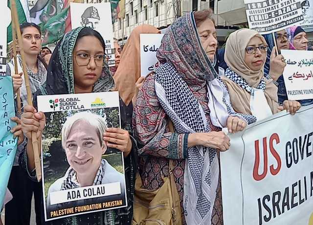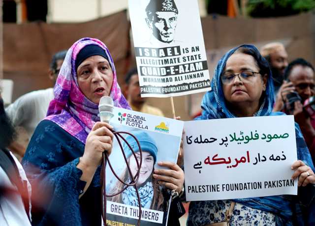 اسلام ٹائمز۔ فلسطین فاؤنڈیشن پاکستان کے زیر اہتمام کراچی پریس کلب کے سامنے صمود فلوٹیلا پر اسرائیلی حملے اور جارحیت کے خلاف احتجاجی مظاہرہ کیا گیا، جس میں سینکڑوں مرد و خواتین نے شرکت کی۔ شرکاء نے امریکا مردہ باد، اسرائیل نامنظور اور فلسطین کی آزادی کے نعرے لگائے۔ مظاہرین نے ہاتھوں میں پلے کارڈز اور بینرز اٹھا رکھے تھے، جن پر صمود فلوٹیلا کی حمایت میں نعرے درج تھے۔ احتجاجی مظاہرے سے مختلف سیاسی و مذہبی جماعتوں کے قائدین سمیت سول سوسائٹی اور انسانی حقوق کے نمائندوں بشمول ملی یکجہتی کونسل سندھ کے صدر اسد اللہ بھٹو، جماعت اسلامی کے مرکزی رہنما ڈاکٹر معراج الہدیٰ صدیقی، سابق رکن سندھ اسمبلی میجر (ر) قمر عباس، پاکستان پیپلز پارٹی کے رہنما ارشد نقوی، جمعت علماء پاکستان کے مرکزی رہنما علامہ عقیل انجم قادری، علامہ قاضی احمد نورانی، پاکستان مسلم لیگ نواز کے رہنما پیر ازہر علی شاہ ہمدانی، سابق رکن قومی اسمبلی محمد حسین محنتی، مجلس وحدت مسلمین کراچی کے صدر علامہ صادق جعفری، علامہ مبشر حسن، مرکزی مسلم لیگ کے رہنما فیصل بلوچ، عوامی نیشنل پارٹی کے رہنما یونس بونیری، پاکستان تحریک انصاف کی رہنما ارم بٹ، پاکستان نظریاتی پارٹی کے حمزہ نقوی، مسیحی رہنما پاسٹر ایمانوئیل، وکلاء رہنما حسیب جمالی، ہیومن رائٹس کونسل آف پاکستان کے جمشید حسین اور فلسطین فاؤنڈیشن پاکستان کے سیکرٹری جنرل ڈاکٹر صابر ابو مریم نے خطاب کیا۔ مظاہرے میں عبدالوحید یونس، یاور عباس، ابراہیم چترالی، اعجاز فضل، مفتی محمد سعید، فروا حسن، نسرین حسین، جبین عالم، فرید میمن، قاضی زاہد حسین سمیت دیگر شخصیات بھی موجود تھے۔.ذریعہ: Islam Times
