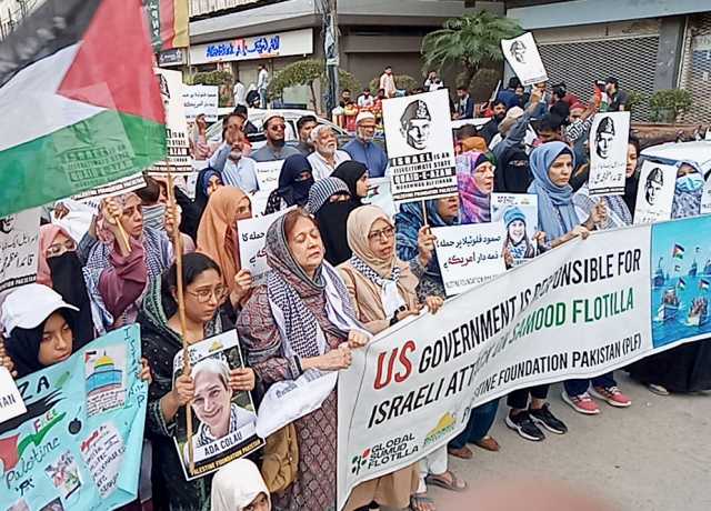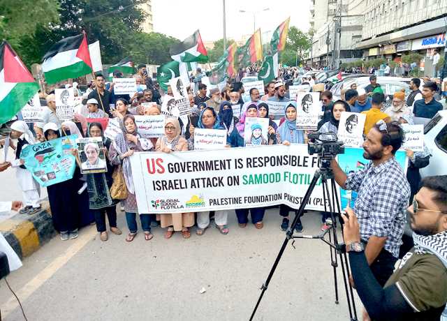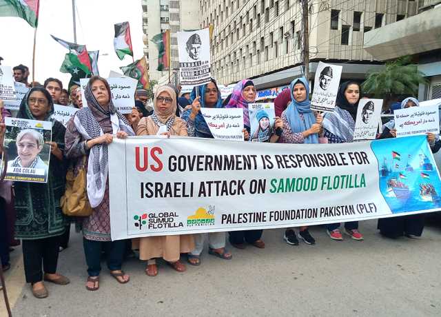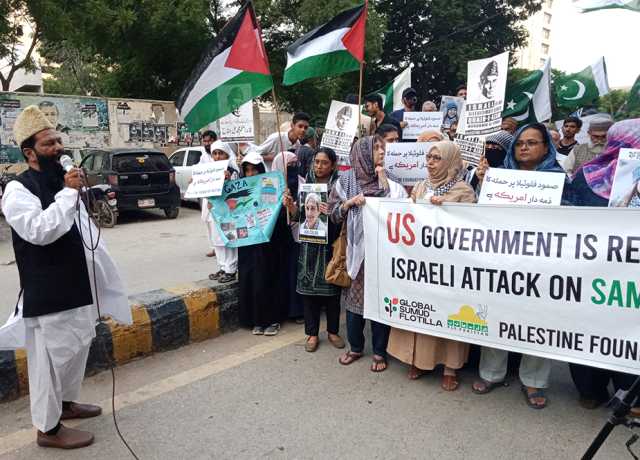 فلسطین فاؤنڈیشن کے تحت صمود فلوٹیلا پر اسرائیلی حملے کیخلاف کراچی پریس کلب پر احتجاجی مظاہرہ