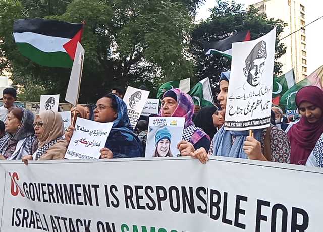 کراچی، صمود فلوٹیلا پر اسرائیلی حملے کیخلاف احتجاج