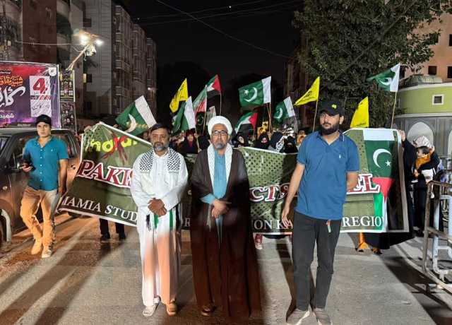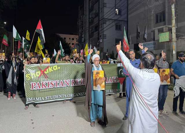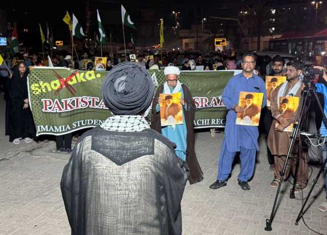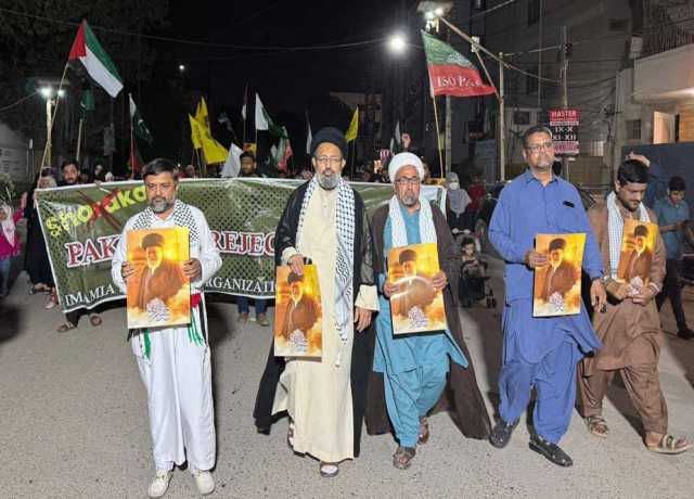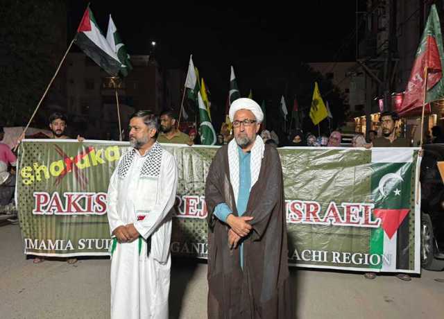 اسلام ٹائمز۔ امامیہ اسٹوڈنٹس آرگنائزیشن پاکستان کراچی ریجن کے زیر اہتمام "نامنظور اسرائیل ریلی" کا انعقاد امام بارگاہ خراسان تا نمائش چورنگی کیا گیا، جس میں مرد، خواتین اور بچوں کی بڑی تعداد نے شرکت کی۔ ریلی کے شرکاء نے فلسطینی عوام بالخصوص گلوبل صمود فلوٹیلا کے رہنماؤں اور شرکاء سے اظہار یکجہتی کیا۔ شرکائے ریلی سے شیعہ علماء کونسل پاکستان کے ایڈیشنل مرکزی سیکریٹری جنرل مولانا ناظر عباس تقوی، مجلس وحدت مسلمین کراچی ڈویژن کے صدر مولانا شیخ محمد صادق جعفری، ہیئت آئمہ مساجد و علمائے امامیہ پاکستان کے مرکزی رہنما علامہ سید صادق رضا تقوی اور تحریک بیداری امت مصطفیٰ (ص) کے رہنما یاور عباس نے کیا جبکہ ریلی کی نظامت کے فرائض احسن مہدی نے انجام دیئے۔