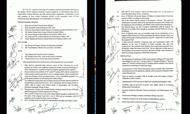 آزاد کشمیر ایکشن کمیٹی معاہدہ.ذریعہ: WE News