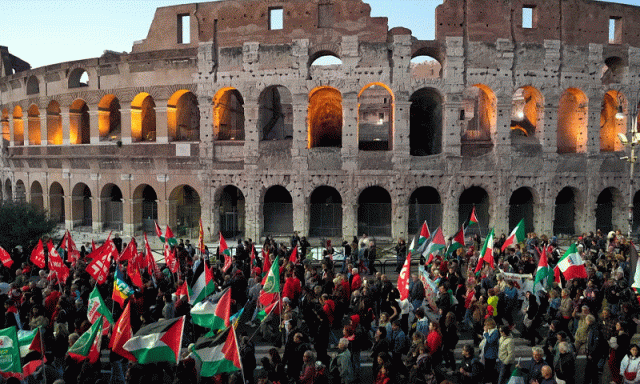 اٹلی کے دارالحکومت روم میں غزہ پر اسرائیلی جارحیت اور امدادی بحری بیڑے کی روکے جانے کے خلاف ایک بڑا مظاہرہ کیا گیا، جس میں منتظمین کے مطابق 10 لاکھ سے زائد افراد شریک ہوئے جبکہ پولیس نے شرکا کی تعداد تقریباً ڈھائی لاکھ بتائی۔