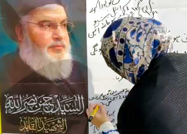اسلام ٹائمز۔ خواہران میثاق با ولایت کراچی کے زیرِ اہتمام شہیدِ مقاومت سید حسن نصراللہؒ کی پہلی برسی کے موقع پر اسلامک ریسرچ سینٹر، عائشہ منزل میں عظیم الشان اجتماع کا انعقاد کیا گیا۔ اس اجتماع میں بڑی تعداد میں خواتین و طالبات نے شرکت کی۔ اجتماع کا مقصد شہید سید حسن نصراللہؒ کی جدوجہد، فکری و مزاحمتی پیغام اور ان کے انقلابی نظریات کو اجاگر کرنا تھا۔ اجتماع میں بزرگ عالم دین آیت اللہ شیخ غلام عباس رئیسی، خانہ فرہنگ ایران کراچی کے ڈائریکٹر ڈاکٹر سعید طالبی نیا، خانم طاہرہ فاضلی و دیگر نے خطاب کیا، جس میں شہید کے افکار سے روشناس کرانے کے ساتھ ساتھ اتحاد، بصیرت اور عملی جدوجہد کے پہلوؤں پر خصوصی طور پر روشنی ڈالی گئی۔ الہادی اسکول کی طالبات کی جانب سے تلاوت قرآن پاک سے اجتماع کے آغاز کے بعد مدرسہ زہراءؑ کی طالبات نے امام زمانہ (عج) اور شہدائے مقاومت سے تجدید عہد کیا۔ اجتماع کے دوران شہید مقاومت سید حسن نصراللہ سے متعلق خانہ فرہنگ ایران کی جانب سے شائع کردہ کتاب ’’مکتب نصراللہ‘‘ کی رونمائی بھی کی گئی۔ اجتماع میں شہید مقاومت سید حسن نصراللہ کے مرقد کی خصوصی طور پر منظر کشی بھی کی گئی، جبکہ شہید سید حسن نصراللہ و دیگر شہدائے مقاومت سے متعلق یادگاری نمائش کا بھی اہتمام کیا گیا، جس میں شہید مقاومت سید حسن نصراللہ و دیگر شہدائے مقاومت کی یادگاری تصاویر و ماڈلز پیش کئے گئے۔ نمائش میں شہید مقاومت سید حسن نصراللہ کے افکار و پیغامات پر مبنی تصاویر و بینرز بھی آویزاں کئے گئے۔ اجتماع میں شریک طالبات و خواتین نے خصوصی طور پر آویزاں کئے گئے بینر پر شہید سید حسن نصراللہ سے متعلق تاثرات بھی درج کئے۔ اجتماع کے دوران شہید مقاومت سید حسن نصرالہ سے متعلق خصوصی ڈاکیومینٹری بھی چلائی گئی۔ اجتماع کا اختتام دعائے سلامتی امام زمانہ (عج) سے کیا گیا۔.ذریعہ: Islam Times