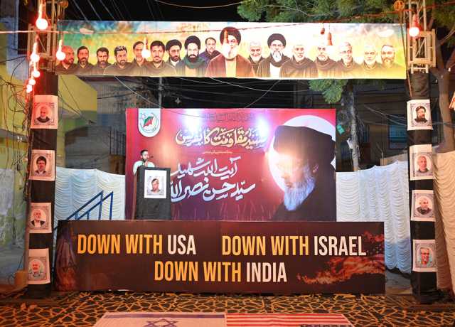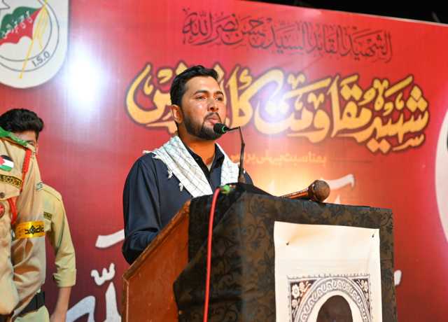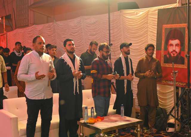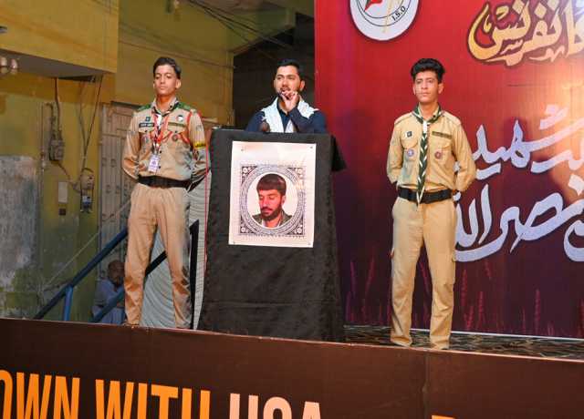 اسلام ٹائمز۔ سید حسن نصراللہ کی پہلی برسی کی مناسبت سے امامیہ اسٹوڈنٹس آرگنائزیشن پاکستان کراچی ڈویژن کی جانب سے شہید مقاومت کانفرنس کا انعقاد کیا گیا۔ کانفرنس میں شرکاء کی بڑی تعداد شریک تھی۔ کانفرنس سے شیعہ علماء کونسل پاکستان کے مرکزی ایڈیشنل سیکریٹری جنرل علامہ سید ناظر عباس تقوی، مجلس ذاکرین امامیہ پاکستان کے صدر علامہ نثار احمد قلندری اور آئی ایس او پاکستان کے سابق مرکزی صدر فخر عباس نقوی نے خطاب کیا۔ اس موقع پر معروف نوحہ خواں و منقبت خواں شاہد علی شاہد اور دستہ امامیہ کے صاحب بیاض عاطر حیدر سمیت دیگر نے بارگاہ شہداء میں نذرانہ عقیدت پیش کیا۔ کانفرنس کے موقع پر شہید حسن نصراللہ کی مرقد کی شبیہ بھی بنائی گئی تھی جس پر امامیہ اسکاؤٹس نے شہید مقاومت کی خدمت میں اسکاؤٹس سلامی بھی پیش کی۔ .ذریعہ: Islam Times