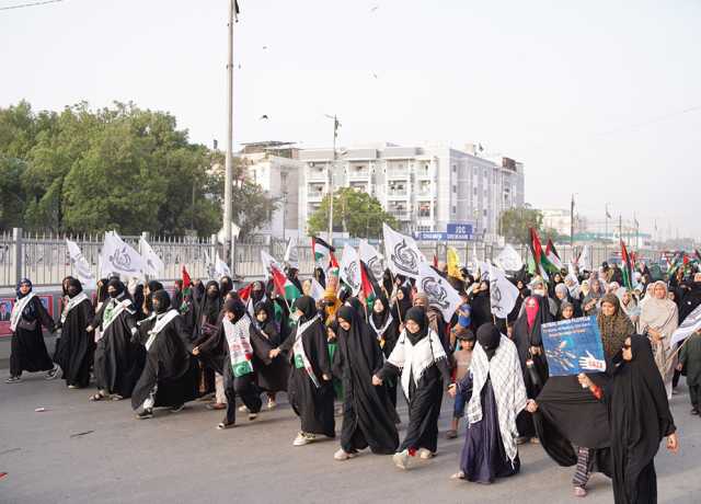 اسلام ٹائمز۔ تحریک بیداری امت مصطفیٰ کے تحت عالمی طوفان الاقصیٰ کے موقع پر پورے ملک خصوصاً کراچی، لاہور، اسلام آباد، کوئٹہ، پشاور، گلگت بلتستان سمیت چھوٹے بڑے شہروں میں یکجہتی غزہ مارچ منعقد ہوئے، مرکزی ریلی کراچی میں نمائش چورنگی سے کیپری سینما تک نکالی گئی، جس کی قیادت تحریک بیداری امت کے مرکزی رہنماء آغا سعی حیدر نے کی۔ ریلی کے اختتام پر ایم اے جناح روڈ پر اجتماع ہوا، جس میں تمام مکاتبِ فکر کے علمائے کرام، باحجاب خواتین، نوجوانوں اور بچوں کی کثیر تعداد نے بھرپور شرکت کی، مرکزی خطاب تحریک بیداری امت مصطفیٰؐ پاکستان کے سربراہ علامہ سید جواد نقوی نے لاہور سے براہ راست کیا۔ اجتماع میں امت واحدہ پاکستان کے سربراہ علامہ محمد امین شہیدی، جماعت اسلامی پاکستان کے مرکزی رہنما ڈاکٹر معراج الہدیٰ صدیقی، شیعہ علماء کونسل کے مرکزی ایڈیشنل سیکریٹری جنرل علامہ سید ناظر عباس تقوی، فلسطین فاؤنڈیشن پاکستان کے مرکزی سیکریٹری جنرل ڈاکٹر صابر ابو مریم و دیگر نے بھی خطاب کیا، جبکہ معروف منقبت و نوحہ خواں شاہد علی شاہد نے ترانہ شہادت پیش کیا۔.ذریعہ: Islam Times