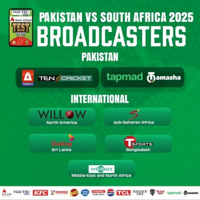 پاکستان بمقابلہ جنوبی افریقہ سیریز کی نشریاتی تفصیلات جاری