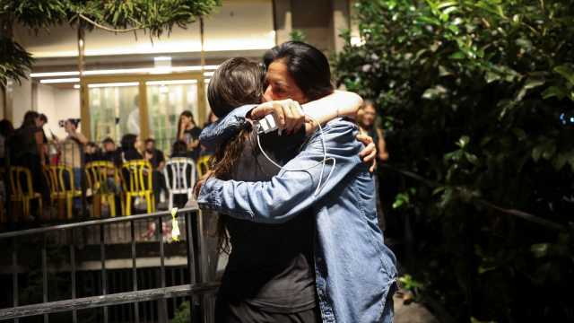 معاہدہ طے پانے کے بعد اسرائیلی قیدیوں کے اہلخانہ ایکدوسرے کو گلے لگا کر مبارکباد دے رہے ہیں