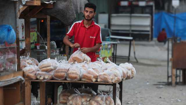 امن معاہدہ طے پانے کے بعد ایک فلسطینی نوجوان بیکری کا سامان پیک کرنے میں مصروف ہے