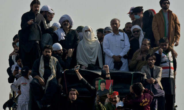نومبر 2024 میں پی ٹی آئی کا دھرنانومبر 2024 میں پی ٹی آئی نے ایک بار پھر عمران خان کی رہائی کے لیے ڈی چوک میں دھرنا دینے کا اعلان کیا۔ پشاور سے نکلنے والے مارچ کی قیادت علی امین گنڈاپور اور بشریٰ بی بی کررہے تھے۔ اس دوران بھی قریباً 4 روز تک راولپنڈی اسلام آباد کے شہریوں کی زندگی مفلوج رہی۔