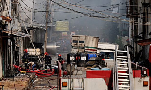 یہ آگ دوپہر کے وقت 7 منزلہ گارمنٹس بلڈنگ میں لگی، اس کے ساتھ واقع کیمیکل گودام میں بلیچنگ پاؤڈر، پلاسٹک اور ہائیڈروجن پر آکسائیڈ ذخیرہ کیا گیا تھا۔