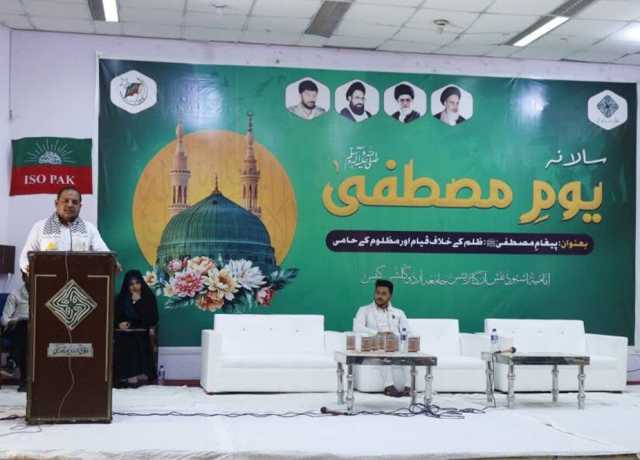 اسلام ٹائمز۔ امامیہ اسٹوڈنٹس آرگنائزیشن پاکستان کراچی ریجن جامعہ اردو گلشن کیمپس کے زیر اہتمام ہر سال کی طرح اس سال بھی جامعہ اردو گلشن کیمپس میں سالانہ یوم مصطفیٰ (ص) کا پروگرام نہایت عقیدت و احترام کے ساتھ منعقد کیا گیا۔ پروگرام کا مقصد طلبہ میں سیرتِ نبی اکرمﷺ، اخلاقِ محمدیﷺ اور شعورِ اسلامی کو اجاگر کرنا تھا۔ سالانہ یوم مصطفیٰؐ کے پروگرام میں امت واحدہ پاکستان کے سربراہ مولانا محمد امین شہیدی، مولانا سید علی عباس رضوی، فلسطین فاؤنڈیشن پاکستان کے مرکزی جنرل سیکریٹری ڈاکٹر صابر ابو مریم و دیگر مقررین نے خطاب کیا۔ پروگرام میں مختلف شعرائے کرام نے نہایت خوبصورت انداز میں نعت و منقبت پیش کی، جس سے محفل کی رونق دوبالا ہوگئی، جبکہ طلبہ و طالبات نے بھی محبتِ رسولﷺ کے جذبے سے سرشار ہو کر نعت رسولِ مقبولﷺ اور منقبت خوانی کی۔ سالانہ یوم مصطفیٰؐ کے موقع پر آئی ایس او کراچی ریجن کے صدر عون علی، آئی ایس او کراچی ڈسٹرکٹ پروفیشنل کے صدر مہدی علی، ڈاکٹر الیاس خاکی، اسٹوڈنٹس ایڈوائزر ڈاکٹر جہانگیر رضا، شعبہ ارضیاتی علوم کی پروفیسر ڈاکٹر شاہین عباس، ڈاکٹر صابہ زہرا، چیئرپرسن شعبہ کامرس، شعبہ کمپیوٹر سائنس کے پروفیسر ڈاکٹر اختر رضا، آئی ایس او کراچی یونیورسٹی یونٹ، آئی ایس او عبدالحق یونٹ، پختون اسٹوڈنٹس، اے پی ایم ایس او اور اسلامی جمعیت طلبہ کے وفود سمیت، اساتذہ کرام، غیر تدریسی اسٹاف، طلبہ و طالبات نے کثیر تعداد میں شرکت کی۔.ذریعہ: Islam Times