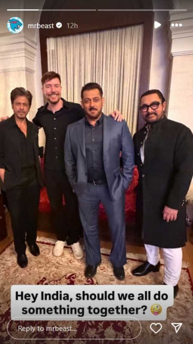 تاہم ان کے کیپشن نے مداحوں میں قیاس آرائیاں شروع کر دیں کہ شاید مسٹر بیسٹ جلد ہی ان تینوں خانز کے ساتھ کسی بڑے پراجیکٹ یا ویڈیو میں نظر آئیں گے۔