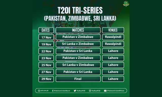 سیریز کا آغاز 17 نومبر کو پاکستان اور زمبابوے کے درمیان راولپنڈی کرکٹ اسٹیڈیم میں میچ سے ہوگا، دوسرا میچ 19 نومبر کو اسی مقام پر سری لنکا اور زمبابوے کے درمیان کھیلا جائے گا۔
