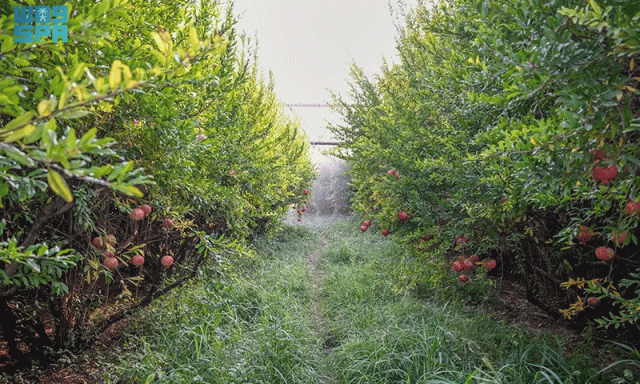 سعودی پریس ایجنسی کی رپورٹ کے مطابق پہاڑوں اور سنہری ریت کے ٹیلوں کے درمیان واقع اس فارم میں انار 3 سے زائد کے درخت ہیں جو ہر سال تقریباً 450 ٹن اعلیٰ درجے کے انار پیدا کرتے ہیں۔