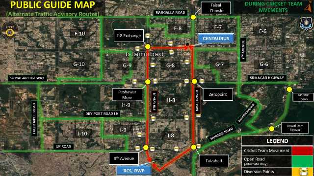 اسلام آباد ٹریفک پولیس کے افسران سروس روڈز پر شہریوں کی رہنمائی کے لیے موجود رہیں گے۔ ترجمان نے خبردار کیا کہ ٹیموں کی موومنٹ کے دوران خصوصاً صبح کے دفتری اوقات، اسکول اوقات اور شام کے رش کے اوقات میں ایکسپریس ہائی وے اور سری نگر ہائی وے پر ٹریفک کی روانی متاثر ہوسکتی ہے۔