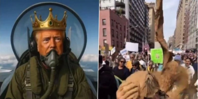 دوسری جانب شہنشاہیت مخالف عوام کا منہ چڑاتے ہوئے انتہاء پسند امریکی صدر ڈونلڈ ٹرمپ نے دو ایسے خود ساختہ ویڈیو کلپس شیئر کئے ہیں جن میں سے ایک میں انتہاء پسند امریکی صدر کو تاج پہنایا جا رہا ہے جبکہ تمام حکومتی عہدیدار اس کے سامنے گھٹنے ٹیکتے نظر آتے ہیں۔ - ڈونلڈ ٹرمپ کی جانب سے شیئر کئے گئے ایک دوسرے آرٹیفیشل ویڈیو کلپ میں انتہاء پسند امریکی صدر کو "شاہ ٹرمپ" کے الفاظ کے حامل ایک لڑاکا طیارے میں "تاج پہنے" دکھایا گیا ہے جو بعد ازاں احتجاجی مظاہرین پر "غلاظت" گراتا نظر آتا ہے! -