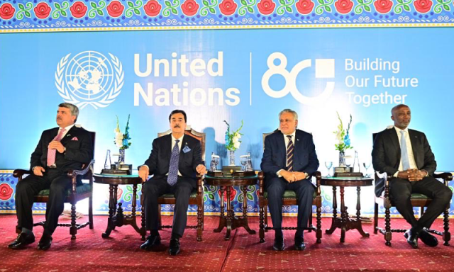 اقوام متحدہ کے قیام کی 80ویں سالگرہ کے موقع پر جمعرات کی شام اسلام آباد میں منعقدہ تقریب سے خطاب کرتے ہوئے نائب وزیرِاعظم و وزیرِخارجہ اسحاق ڈار نے کہا کہ دنیا اس وقت بڑھتی ہوئی عدم استحکام، وسیع تر عدم مساوات، اور عالمی اداروں پر اعتماد کے فقدان جیسے مسائل سے دوچار ہے، حالانکہ یہ ادارے عالمی امن و خوشحالی کے تحفظ کے لیے قائم کیے گئے تھے۔