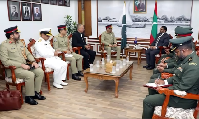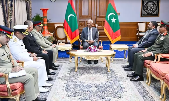 چیئرمین جوائنٹ چیفس آف اسٹاف کمیٹی جنرل ساحر شمشاد مرزا نے جمعے کو مالدیپ کے صدر ڈاکٹر محمد معیز، وزیرِ دفاع محمد غسان مامون، اور چیف آف ڈیفنس فورس میجر جنرل ابراہیم حلمی سے الگ الگ ملاقاتیں کیں۔