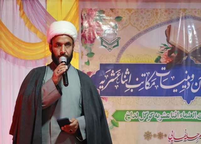 شیخ ناظر مہدی محمدی نے اپنے صدارتی خطاب میں معاشرے کو ایک قرآنی اور اہل بیت دوست معاشرہ بنانے پر زور دیا اور اپنے بچے بچیوں کو قرآن مجید اور ائمہ معصومین (ع) سے نزدیک کرنے اور دنیوی تعلیم کے ساتھ علوم آل محمد (ع) سے ان کے دلوں کو منور کرنے پر زور دیا، تاکہ ہمارا مستقبل روشن ہو اور دنیا و آخرت دونوں میں سرفراز ہو سکیں۔
