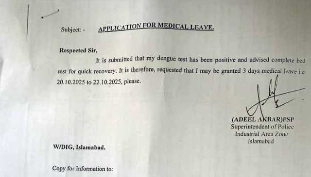 ایس پی عدیل اکبر کی چھٹی کی درخواست اور میڈیکل رپورٹ سامنے آگئی