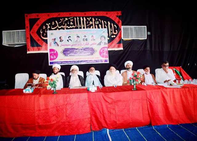 سیمینار سے مرکزی صدر مجلس علماء مکتب اہلبیت پاکستان علامہ سید حسنین عباس گردیزی، علامہ عسکری الہدایت، علامہ غلام مصطفیٰ انصاری، علامہ غلام عباس یزدانی، علامہ قاضی نادر حسین علوی، فضل عباس نقوی، علامہ طاہر عباس نقوی و دیگر نے خطاب کیا۔ چھوٹی تصاویر تصاویر کی فہرست سلائیڈ شو