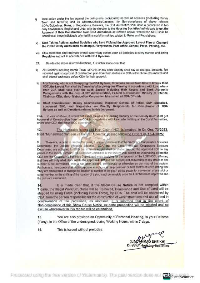 سی ڈی اے نے نیشنل کوآپریٹو ہاؤسنگ سوسائٹی اور ارتھ ڈویلپرز کو فائنل شوکاز نوٹس جاری کر دیا،کاپی سب نیوز پر