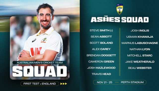 ایشیز سیریز، آسٹریلیا کا پہلے ٹیسٹ کے لیے اسکواڈ کا اعلان