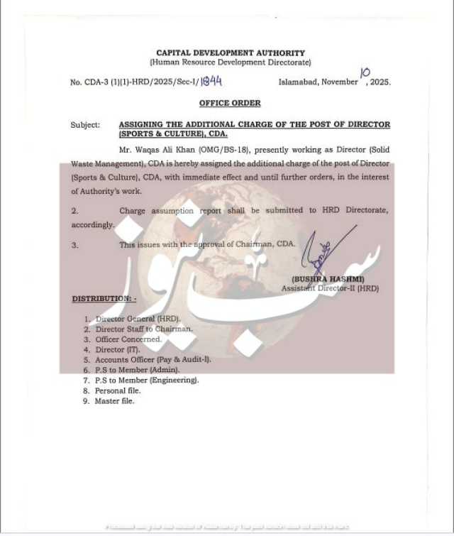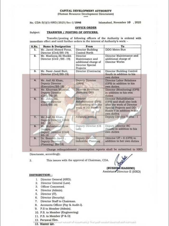 سی ڈی اے میں تقرری و تبادلے کی تازہ ہوا چل پڑی، کس کس کو کون کونسا عہدہ ملے گیا،، دستاویزسب نیوزپر