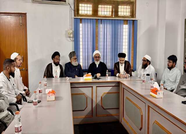 اسلام ٹائمز۔ بھارتی شہر حیدرآباد میں علماء کرام کے ایک وفد نے جماعتِ اسلامی تلنگانہ کے صدر حامد محمد خان سے جماعتِ اسلامی تلنگانہ کے ہیڈکوارٹر میں ملاقات کی۔ علماء کرام کے وفد میں حجۃ الاسلام والمسلمین ڈاکٹر عبدالمجید حکیم الٰہی (نمائندہ رہبرِ معظم انقلابِ اسلامی ایران سید علی خامنہ ای مدظلہ العالی) کے علاوہ حجۃ الاسلام والمسلمین مولانا سید تقی رضا عابدی (صدر تنظیمِ جعفری)، حجۃ الاسلام والمسلمین مولانا قمر حسنین اور حجۃ الاسلام والمسلمین مولانا آغا منور علی شامل تھے۔ استقبالیہ ملاقات نہایت خوشگوار ماحول میں انجام پائی، جس میں مختلف دینی، سماجی اور فکری امور پر تبادلۂ خیال کیا گیا۔ اس موقع پر طرفین نے امتِ مسلمہ میں وحدت، اخوت اور باہمی تعاون کی ضرورت پر زور دیا۔ ملاقات کے دوران اسلامی تعلیمات کے فروغ، بین المذاہب ہم آہنگی اور سماجی و تعلیمی میدانوں میں مشترکہ کوششوں پر اتفاقِ رائے کیا گیا۔ وفد نے جماعتِ اسلامی ہند کے عوامی و فلاحی سرگرمیوں کو سراہتے ہوئے انہیں امت کی اصلاح و بیداری کے لئے اہم قرار دیا۔ یہ ملاقات باہمی احترام، دینی ہم آہنگی اور اسلامی اتحاد کے فروغ کی ایک مثبت اور قابلِ قدر کاوش قرار دی جا رہی ہے۔.ذریعہ: Islam Times