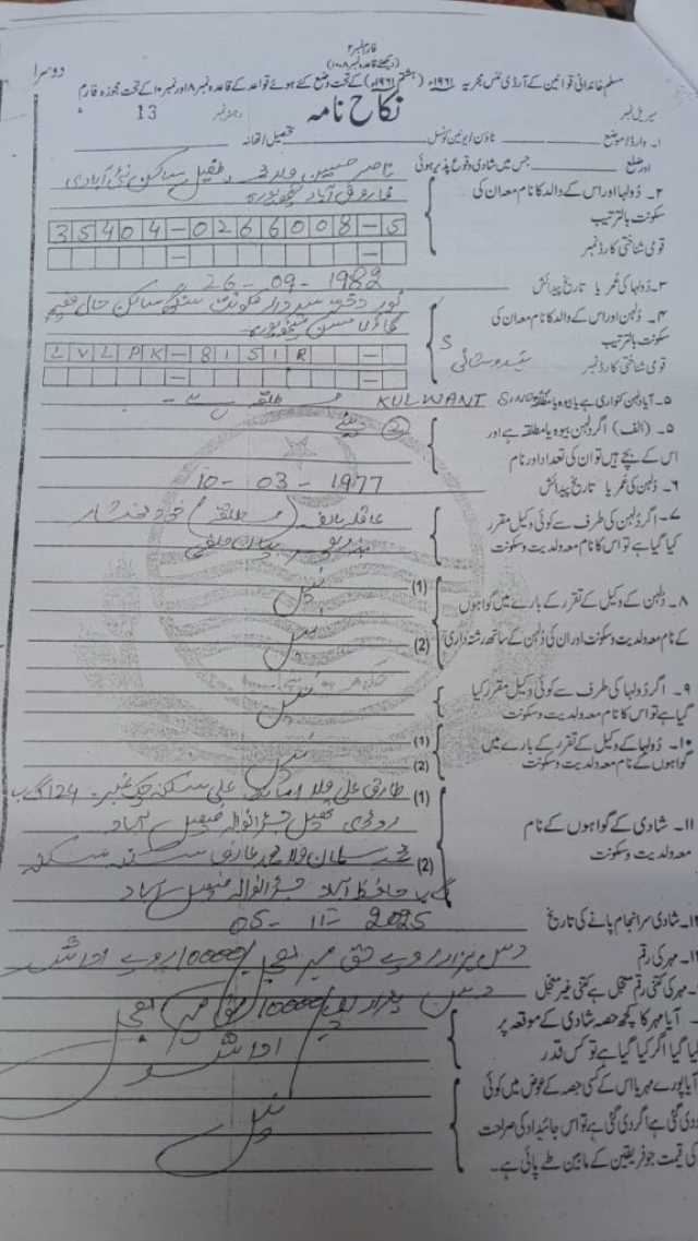 نکاح 5 نومبر کو ضلع شیخوپورہ کے علاقے فاروق آباد میں ہوا، جس میں 10 ہزار روپے حق مہر ادا کیا گیا۔