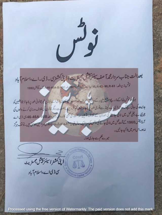 کلیدی لفظ: نوٹس جاری کر دیا سی ڈی اے مل پور پور کی