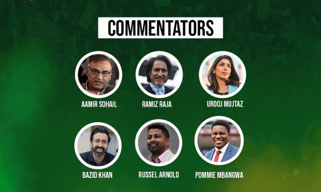 سیریز کے دوران پاکستانی شائقینِ کرکٹ کو ملکی اور غیر ملکی مشہور کمنٹیٹرز کی آوازیں سننے کو ملیں گی۔ اعلان کے مطابق عامر سہیل، رمیز راجہ، عروج مشتاق، بازید خان، رسل آرنلڈ اور پومی امبانگوا کمنٹری کے فرائض انجام دیں گے۔