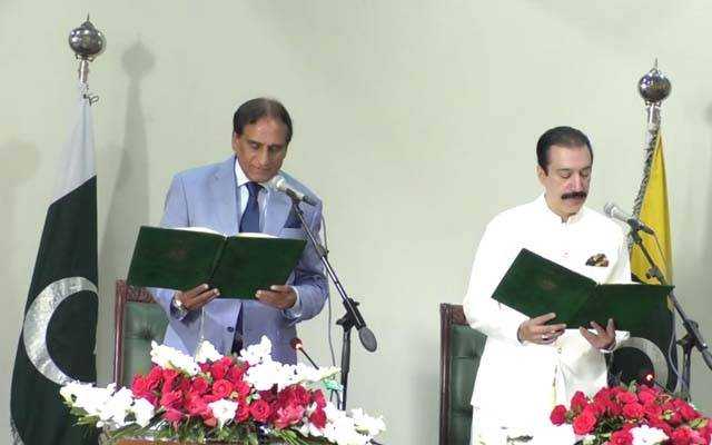 آزاد کشمیر کے نومنتخب وزیر اعظم راجہ فیصل ممتاز راٹھور نے حلف اٹھا لیا