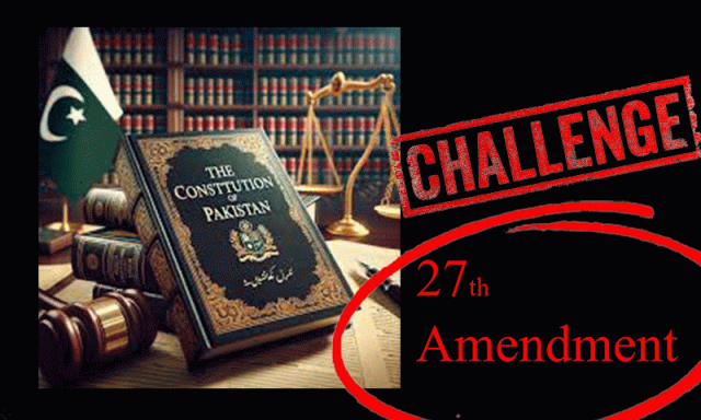 ذرائع کے مطابق ترمیم چیلنج کرنے کے لیے ڈرافٹ تیار کر کے سپریم کورٹ کو بھجوا دیا گیا، سپریم کورٹ میں آج ہی 27 ویں ترمیم کے معاملے کو چیلنج کیا جائے گا۔