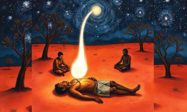 ڈریم ٹائم کی کہانیوں میں موت بھی زندگی کی طرح ایک سفر ہے جو ختم نہیں ہوتا، صرف روپ بدلتا ہے۔ ان کی روایت کہتی ہے کہ جب انسان اس دھرتی سے رخصت ہوتا ہے تو اس کی روح جسمانی قید سے آزاد ہو کر آسمان کی وسعتوں میں داخل ہوجاتی ہے، اور پھر ایک چمکتے ہوئے ستارے میں تبدیل ہو جاتی ہے۔
