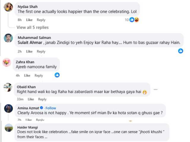 اگرچہ یہ واضح نہیں کہ سالگرہ کی تقریب کب منائی گئی تاہم سوشل میڈیا پر شیئر کی جانے والی تصویر نے سب کی توجہ حاصل کر لی، بعض مداحوں نے جوڑے کو مبارک باد دیتے ہوئے قرۃالعین کی موجودگی کو ایک مثبت مثال قرار دیا ہے۔