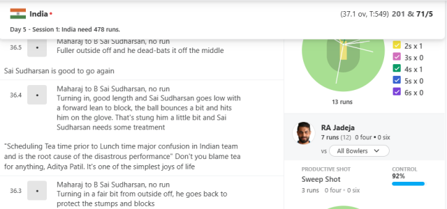 گوہاٹی میں کھیلے جارہے ٹیسٹ میچ میں 549 رنز کے ہدف کے تعاقب میں صرف 58 رنز پر آدھی ٹیم ڈھیر ہونے کے بعد شائقین نے انوکھی منطق نکال لی۔