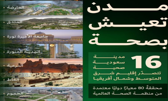 سعودی عرب کے 16 شہر عالمی معیار کے مطابق صحت مند شہروں کی فہرست میں شامل ہو گئے۔