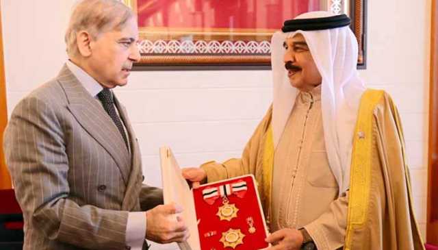 بحرین کے بادشاہ نے وزیرِ اعظم شہباز شریف کو آرڈر آف بحرین پیش کیا، یہ بحرین کی جانب سے عالمی سربراہان کو پیش کیا جانے والا سب سے بڑا اعزاز ہے۔