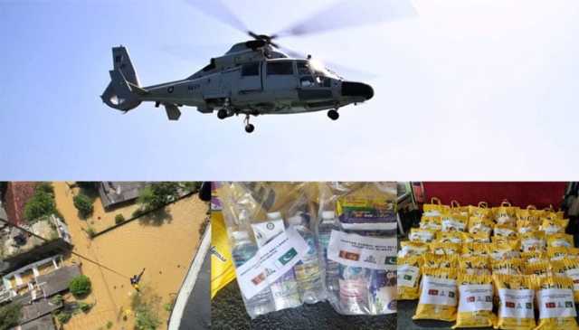 کولمبو سے موصولہ اطلاعات کے مطابق پاکستان نیوی کے زیرِ اہتمام ہیلی کاپٹر کے ذریعے زیرِ آب اور زمینی راستوں سے کٹے علاقوں تک سامان کی فراہمی کی جا رہی ہے۔