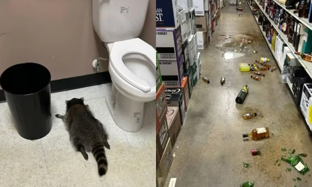 ریکون کا کھڑاک شراب کی دکان شرابی ریکون.ذریعہ: WE News