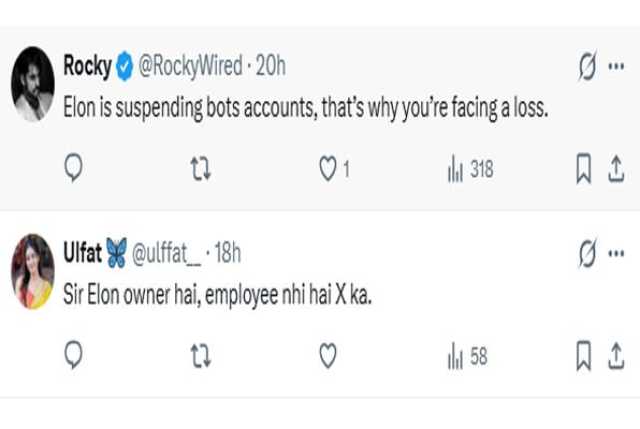 ایک صارف نے براہ راست ایلون مسک کو مخاطب کرکے وجہ پوچھنے پر مزاحیہ انداز میں کہا کہ ’ایلون ایکس کا مالک ہے، ملازم نہیں ہے‘۔