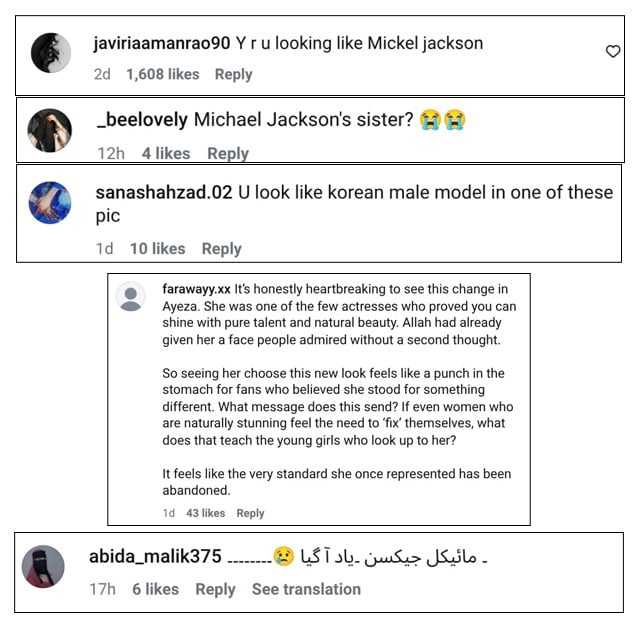 تصاویر وائرل ہوئیں تو ایک صارف نے لکھا کہ عائزہ خان تو اب مائیکل جیکسن لگ رہی ہیں۔
