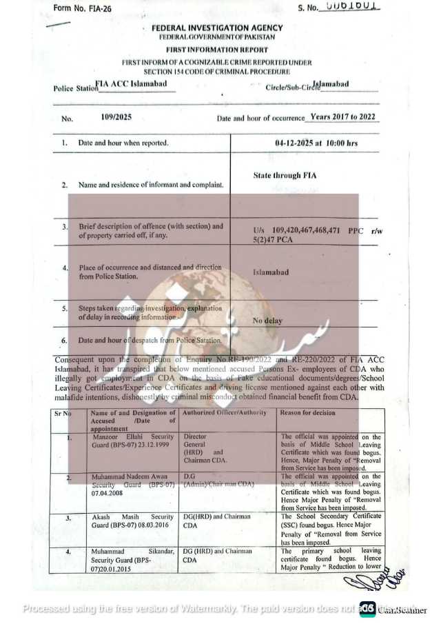 ایف ائی اے کی بڑی کاروائی ،، سی ڈی اے کے56 ملازمین کے خلاف مقدمہ درج،؟ ایف آئی آر و تفصیلات سب نیوز پر