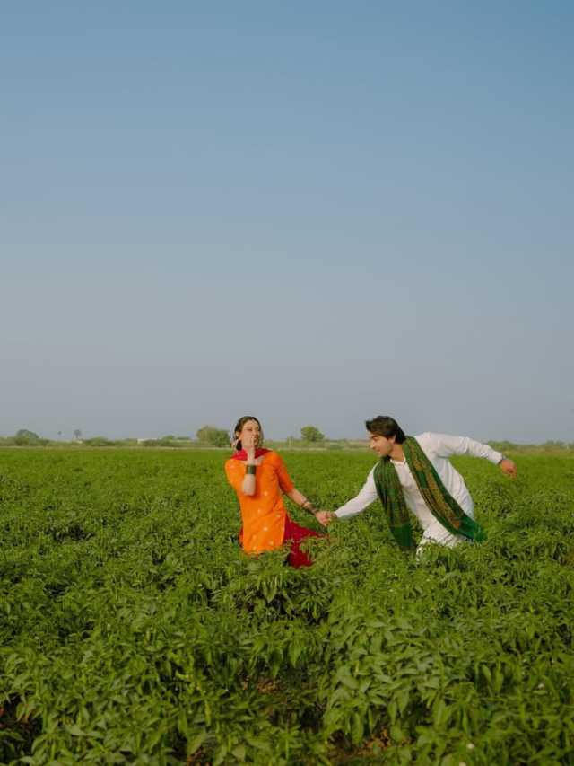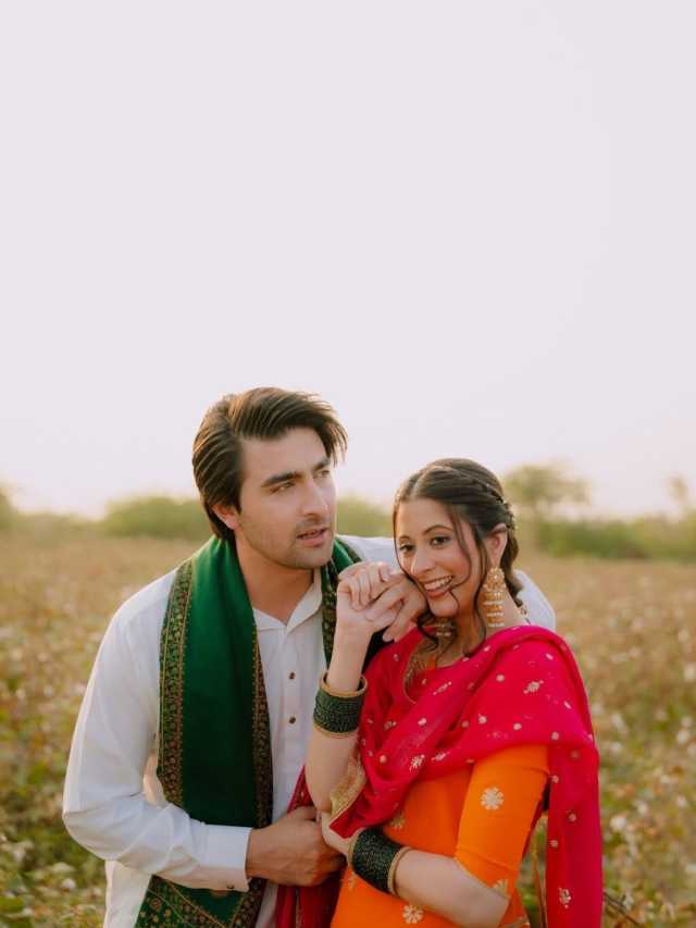 کھلے میدانوں میں، روایتی پنجابی لباس پہنے دونوں نے تصاویر شیئر کیں اور ساتھ خوبصورت کیپشن لکھا کہ ’ ہمارا تو ہو گیا، آپ لوگ اپنا دیکھ لو‘۔