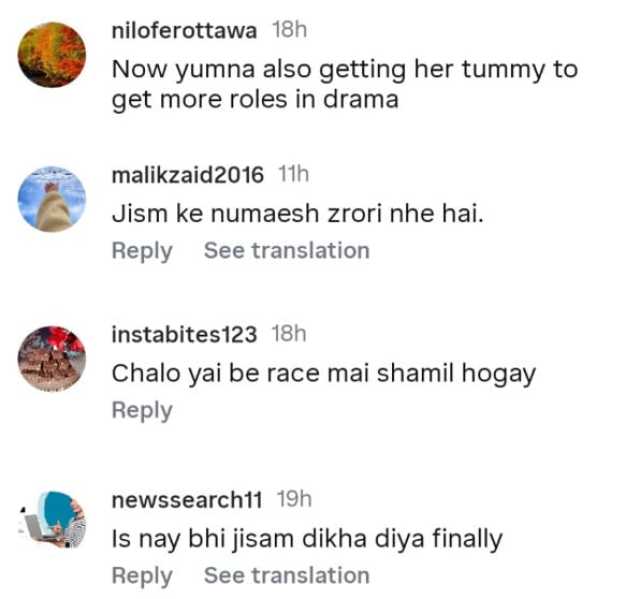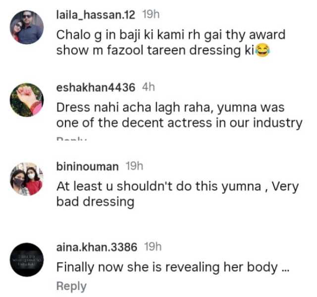 بعض صارفین نے لباس کو نامناسب قرار دیا اور کہا کہ یمنٰی اس میں آرام دہ محسوس نہیں کررہیں۔